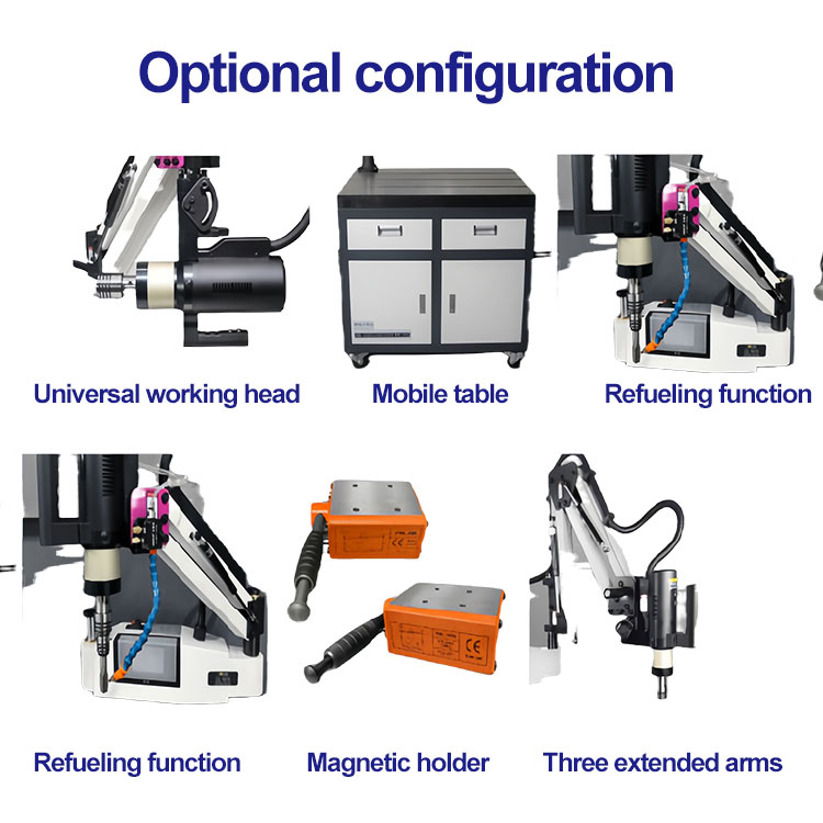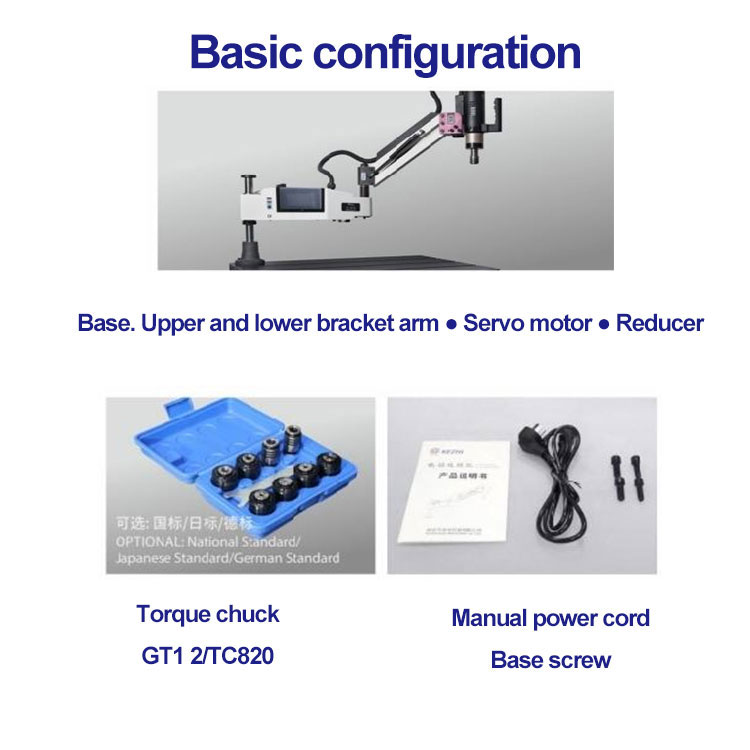 सर्वो इलेक्ट्रिक टैपिंग मशीन मुख्य कॉन्फ़िगरेशन: सर्वो मोटर (ओकेर्स), सर्वो ड्राइव सिस्टम, उच्च-परिभाषा मानव-मशीन इंटरफ़ेस, सटीक ग्रह रिड्यूसर, उच्च परिशुद्धता असर ब्रैकेट, उच्च शक्ति निश्चित सीट, सुरक्षा टोक़ सुरक्षा चक, एक इलेक्ट्रिक बॉक्स, चक के लिए एक विशेष रिंच, एक पावर लाइन, एक पावर लाइन, एक पावर लाइन