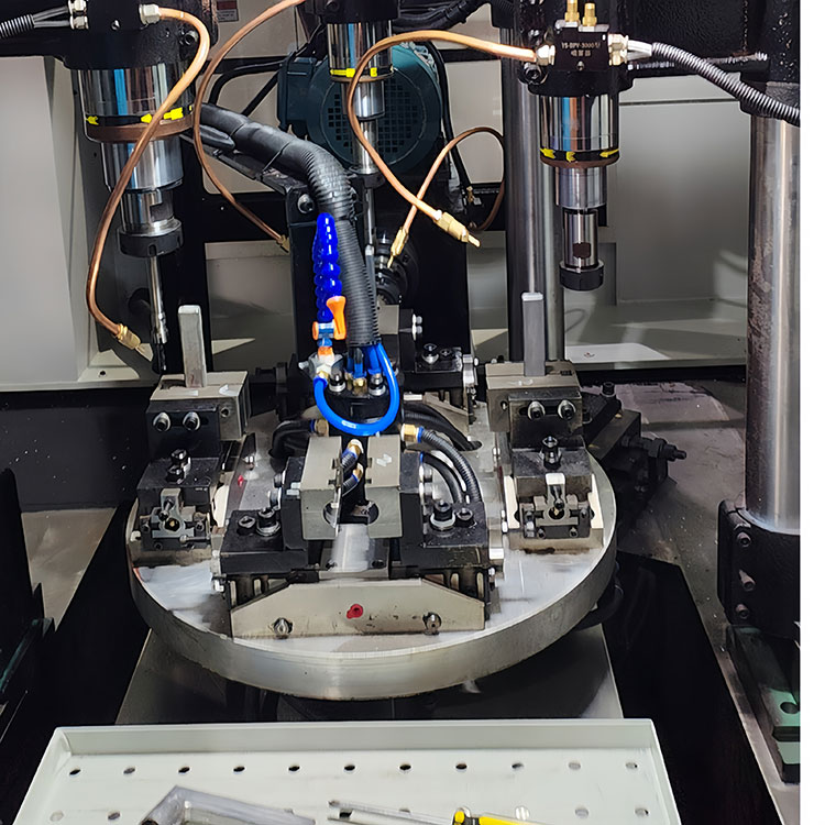 हमारी मशीन का मूल एक चार-अक्ष डिज़ाइन है जो 360-डिग्री रेंज के भीतर जटिल और सटीक गति कर सकता है। यह इसे मिलिंग और ड्रिलिंग के साथ-साथ उच्चतम परिशुद्धता के साथ काटने और पीसने के लिए आदर्श बनाता है। इसके अलावा, चार-स्टेशन वाली रोटरी टेबल तेजी से प्रसंस्करण समय की अनुमति देती है क्योंकि मशीन के चलने के दौरान भागों को लोड और अनलोड किया जा सकता है।